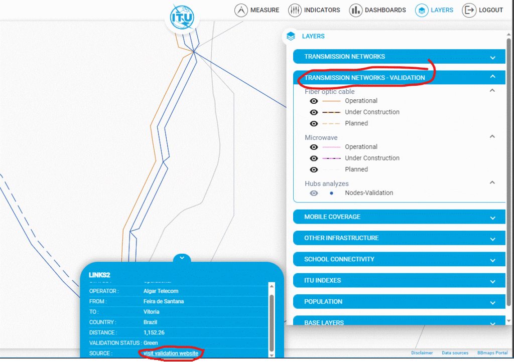 The validation framework is a content management system (CMS) that shows all of the source material used in the map, the research, production and validation status of each piece of network infrastructure, and facilitates the interaction between network operators and other stakeholders in validating the ITU Interactive Transmission Map. The framework records and authenticates all information and correspondence related to the information shown in the ITU Interactive Transmission Map.